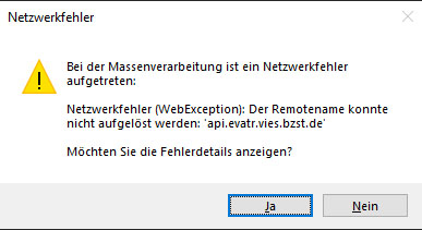 Tritt ein Problem während einer Massenabfrage auf erscheint einmalig eine Abfrage, ob Sie Details zum Problem einsehen möchten. Auch hier erscheint dann das Diagnosefenster. Wird es verneint erscheint es nicht noch einmal, um den Anwender nicht bei jeder einzelnen Abfrage damit erneut zu konfrontieren.